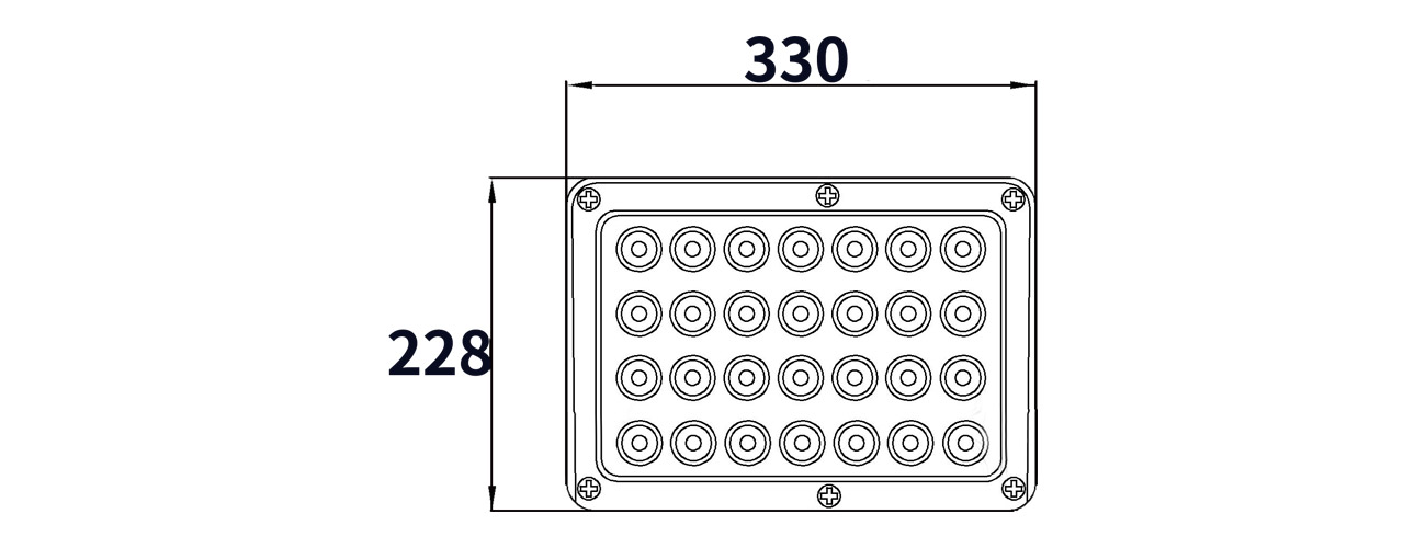 型 號(hào) JFTF330-A56-D2 芯 片 CREE 功 率 56W 電 壓 DC24V 工作溫度 -40℃~+60℃ 尺 寸 W330*H228 光 束 角 4